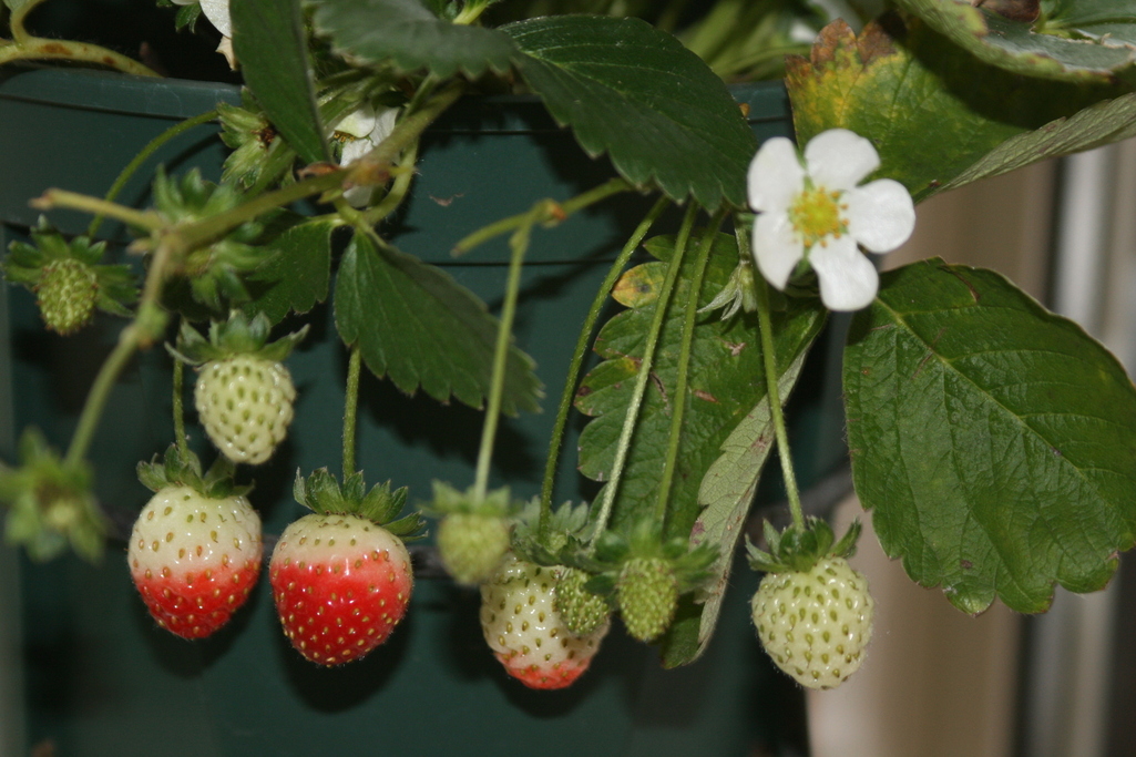 イチゴって実の先端からラインを引いたように水平に赤くなっていくんですね
