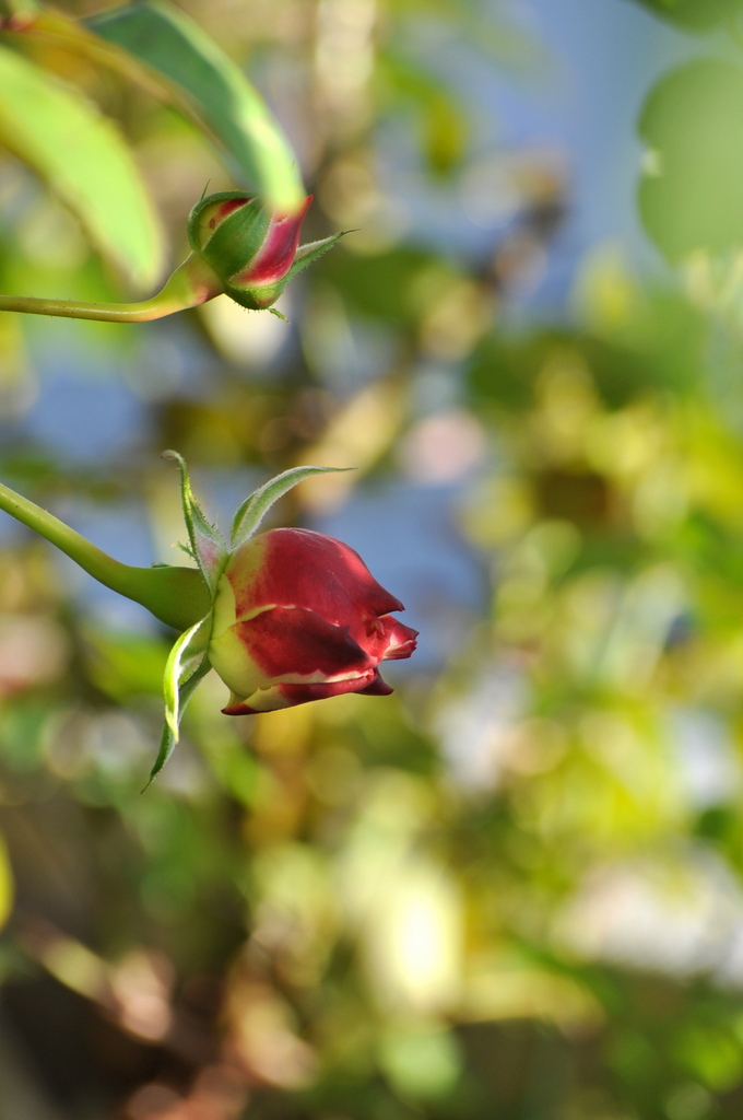 寒いせいか、成長が止まってしまったギョーローズのエリアーヌジレさんの蕾