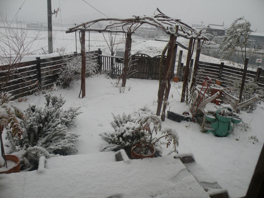 ガセボ風アーチのある、前庭。手抜きしているところも雪が隠してくれています(~0~)
