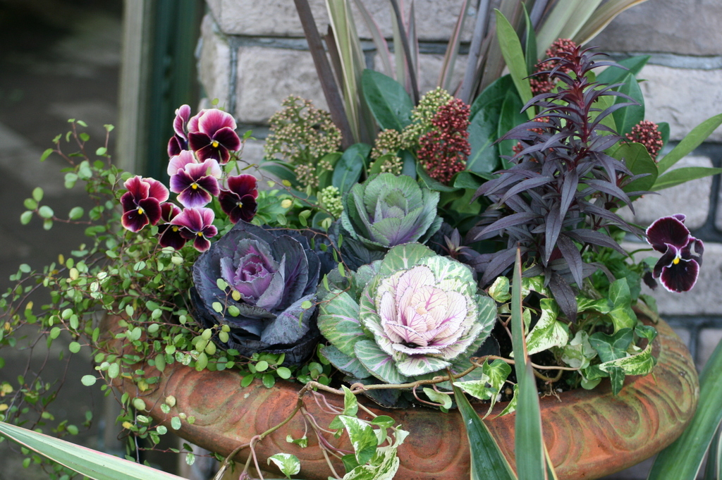 好みです。うちの玄関もブラック系を中心にした寄せ植えがならんでます。