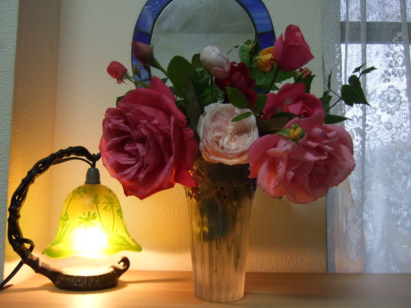 薔薇を大切にされていますね! その横のランプも素敵です~~♪
