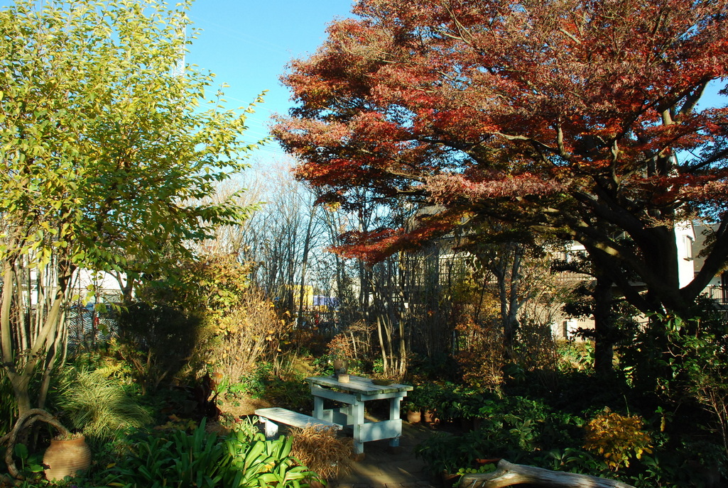 右と左の木の葉の色が対照的ですね。 クリスマスローズ着々と成長してますね。