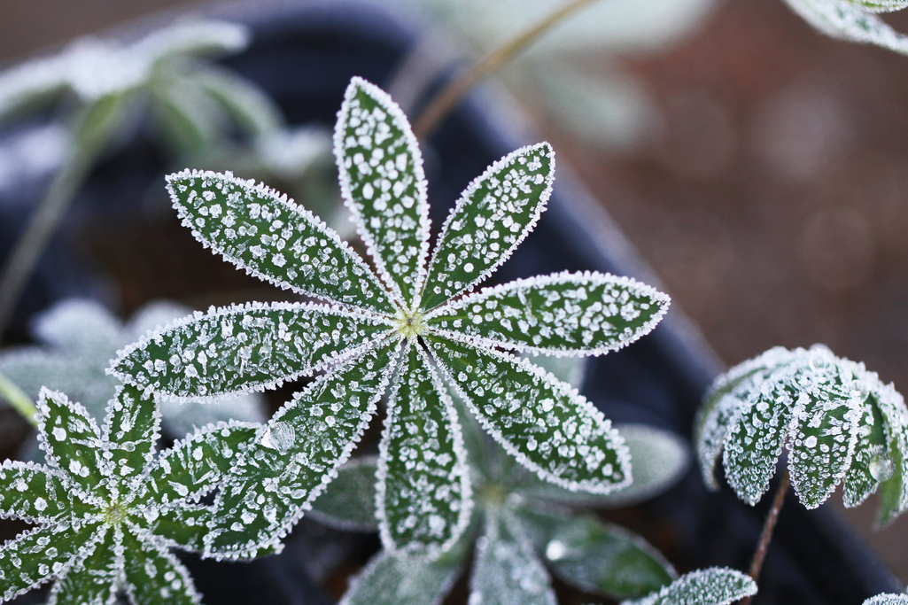 ルピナスには悪いけど、このままずっと霜が溶けずにいてほしい...