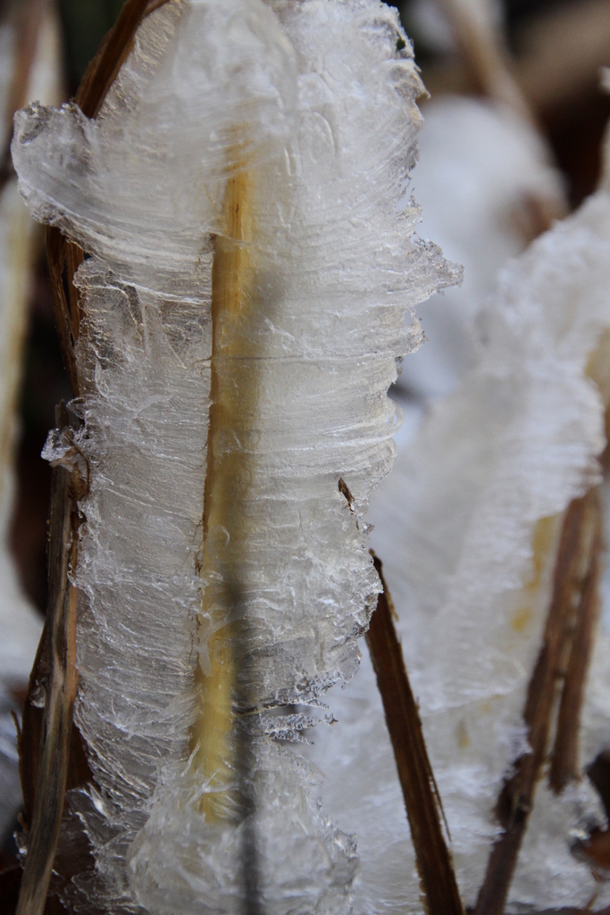 シモバシラ、実物は残念ながらみたことがありません。これも自然の芸術ですね。