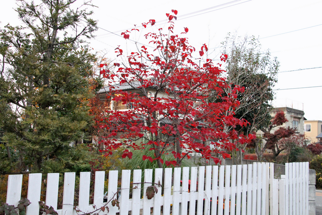 白いフェンスにひと際赤が冴えますね。山のあかい帽子なのですね^^