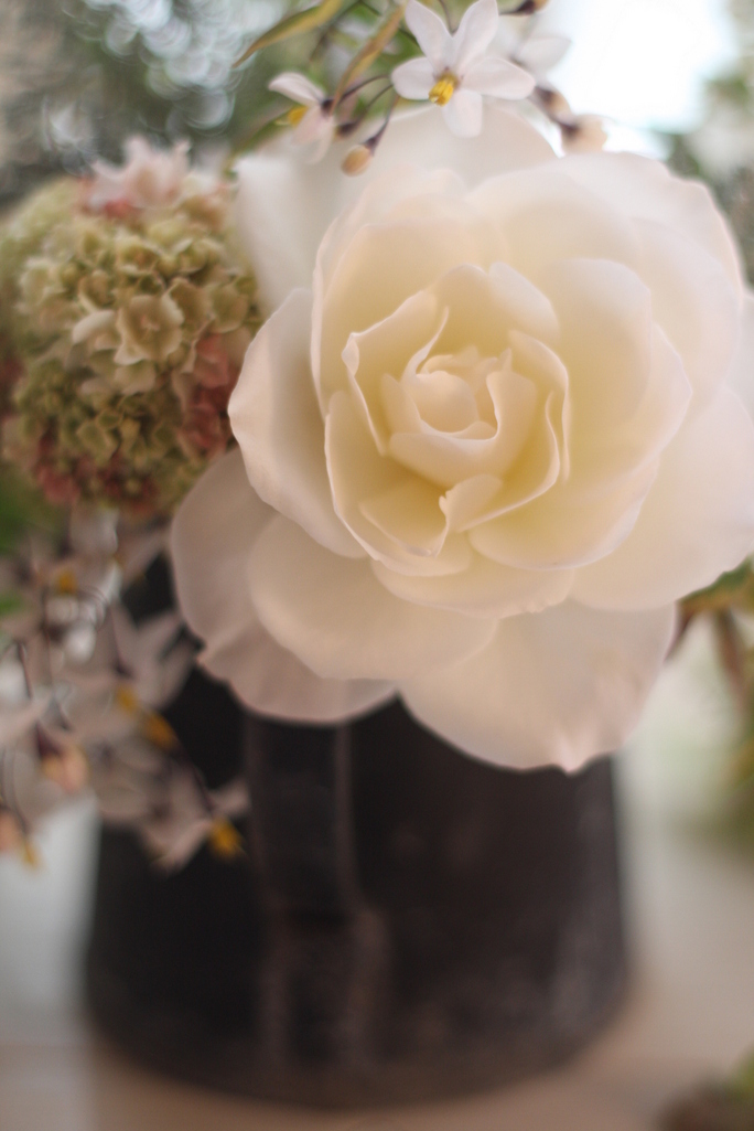 蔓のアイスバーグが軒よりも高い所で咲いていました。