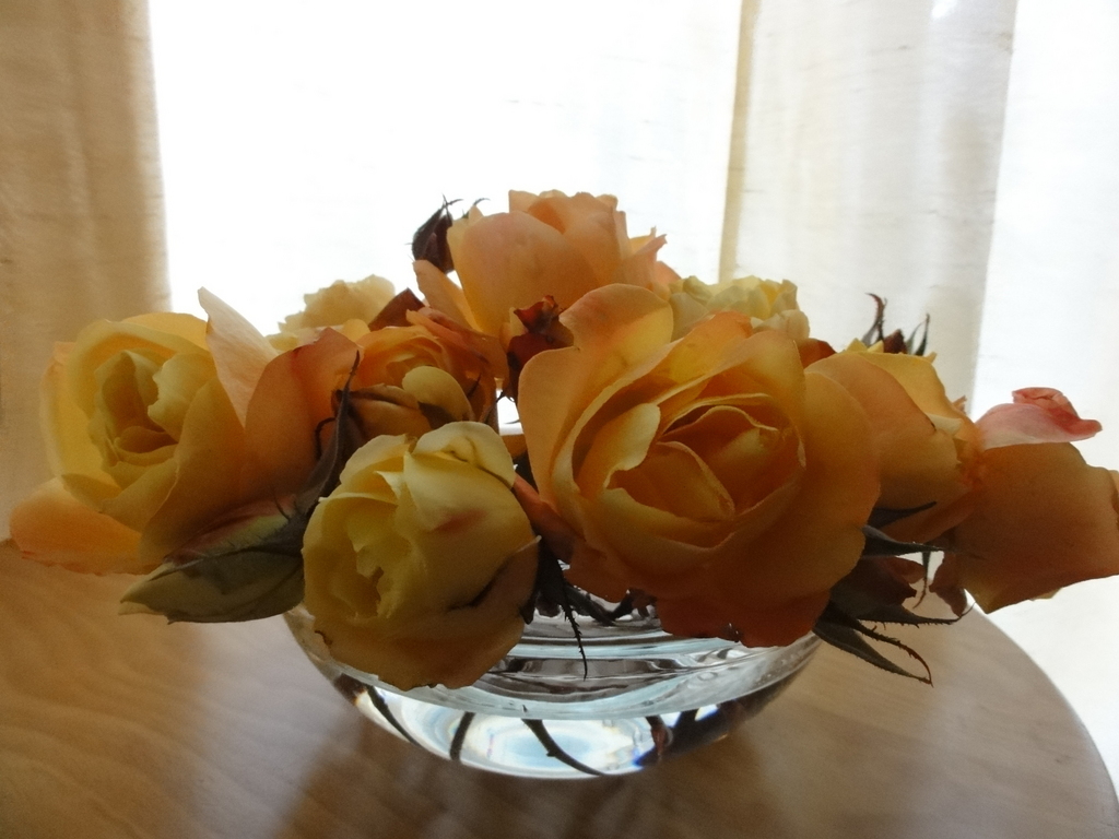 花器に入れて、いろんな場所に飾ってみました。光の入り方、角度で表情が変わります。