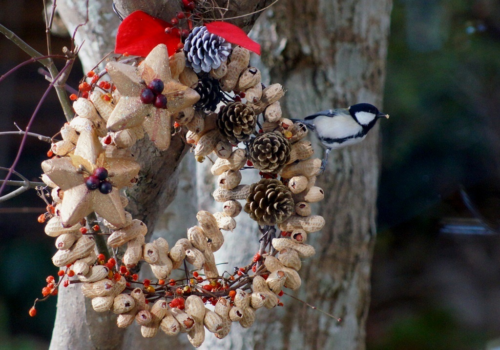 最高のプレゼントですね(笑顔)年々レベルアップしているピーナッツリース!ibuhatoさんの鳥に寄せる優しい思いが伝わります。クチコミ(鳥たちの)ですぐになくなりそうなのが心配ですが・・