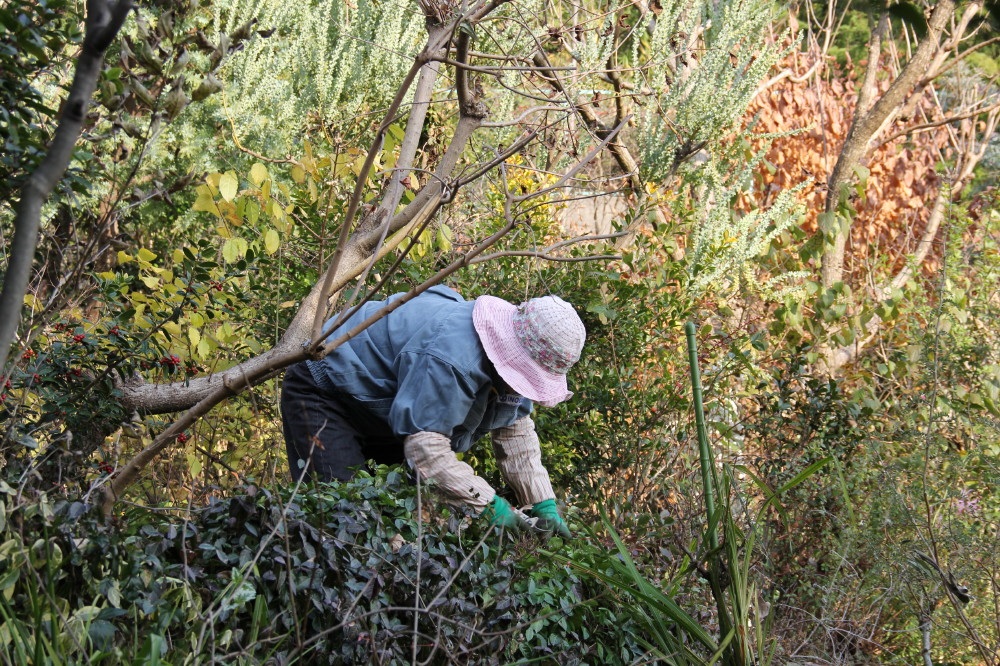社長、完璧な庭仕事&紫外線対策ファッションです。ちょっとファンになったかも。