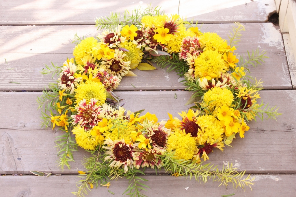 すご~い!クリスマスに、夏・秋の花のリースだなんて、瀬戸内は本当にあたたかいのですね!最近、中国地方の知人に「バラ園では年中バラが咲いてますよ」って聞いて驚いたのですが、このリースを拝見して納得しました!