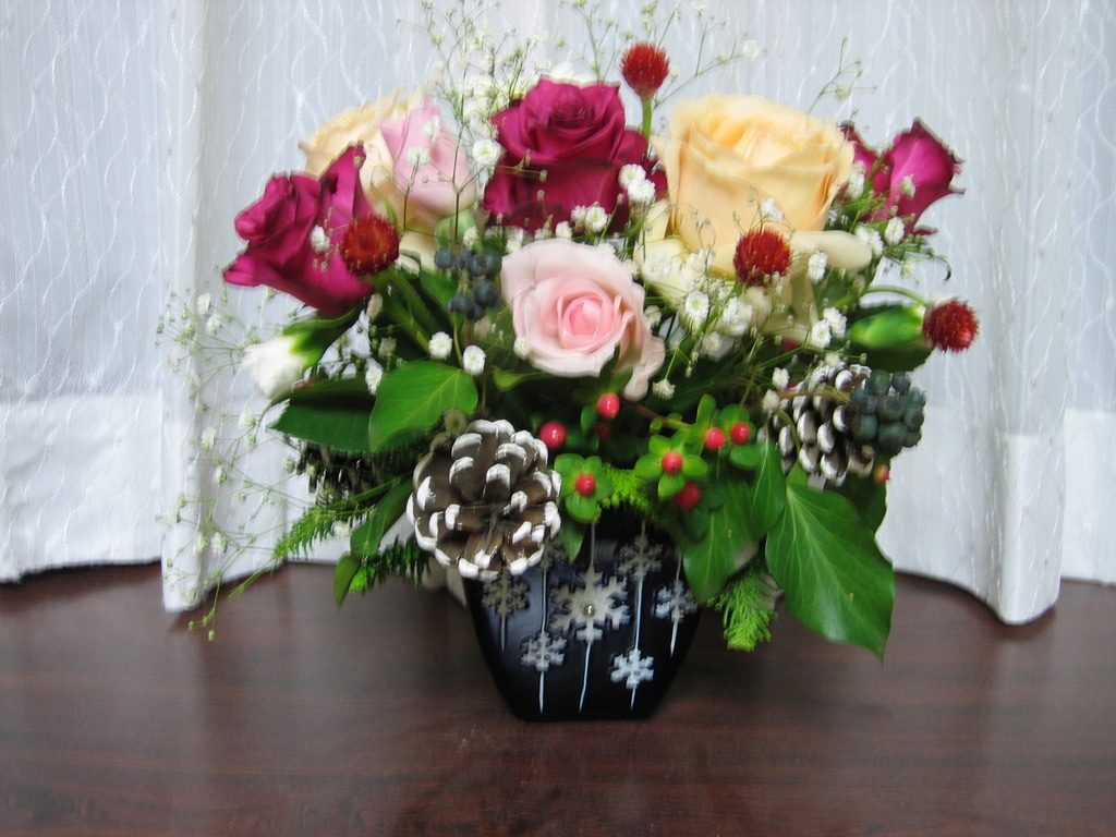 花屋さんでお花を選んで活けてみました。少しバランスが悪いかな?お花が高かった~~(><)でもちょっと大人っぽく仕上げれた気がします。メリークリスマス!