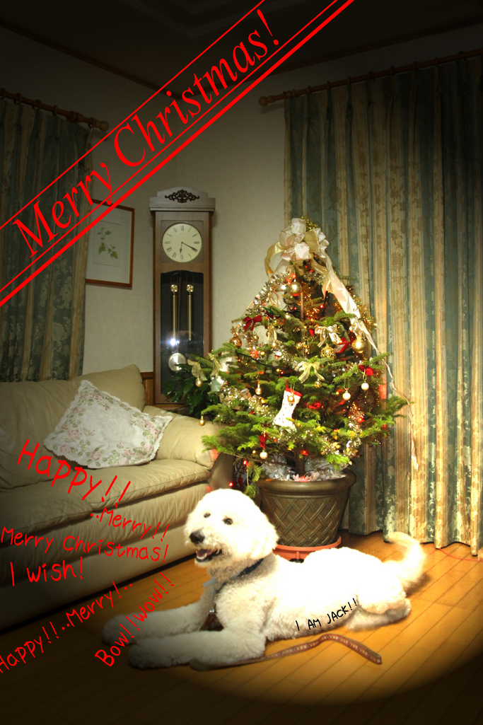 JACKくん、メッセージ受け取りました。ありがとう(*^^*) よいクリスマスを過ごしたかナ?うちのチョコ君はサンタさんにビーフ味のフードをもらって大喜びでした。