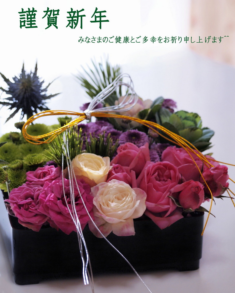明けましておめでとうございます。こんなゴージャスな年賀状もらったことないです。お花の重箱詰め合わせ.....ちょっとこのアイデアは来年の年賀状の参考にさせてもらいたいです。