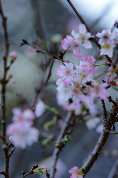 私もビックリしました!冬に桜なんて…。日陰にヒッソリと咲く桜、とても可愛いですね♪