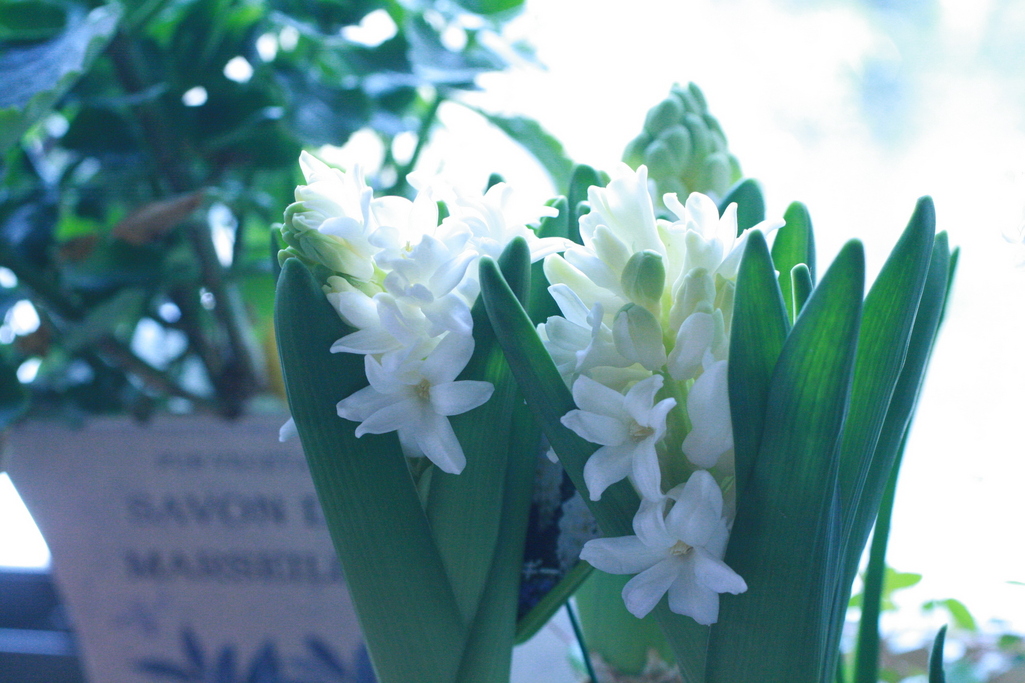 白のヒヤシンスって清楚でいいですよね。大好きです!うちもまだまだがんばって香ってくれています。