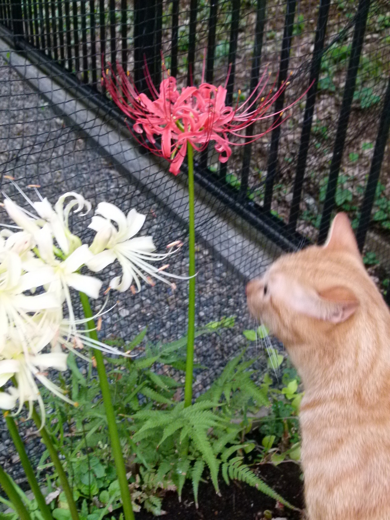 はじめまして~^^ チャトラさんは 庭にゃんこですか? お花が似合ってますよ♪