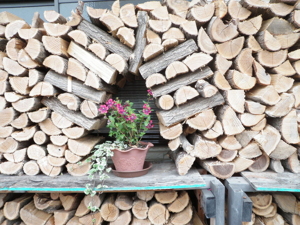 昨年、薪棚に空間をつくり、鉢を置いてみました。