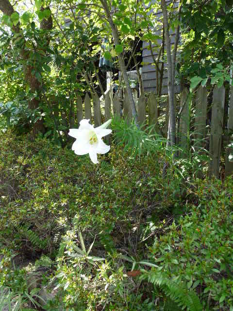 真夏に咲く花は、貴重ですよね。雑木の中に一輪のゆりが、いいですね。うちの庭でも、一時期たくさん生えてました。種ができると、ぱらぱらと、ばらまきます。