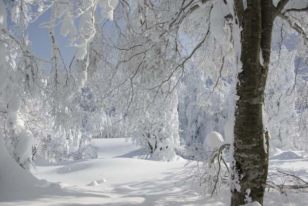 たくさん雪を積んで重そうですね!真っ白で綺麗ですね!