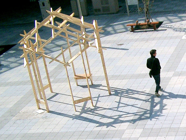 ドームパーゴラを手掛けて3回目、以前は森の公園に設置した。これが県の保養施設で充実しているのに人がほとんど来ない。だが、今回はなんと駅前広場に展示、これもアート作品として。