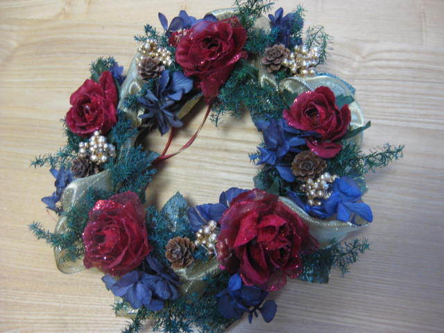 素敵な色合わせですね!こんなリースをお部屋に飾ったら、毎日ウキウキしそうです!