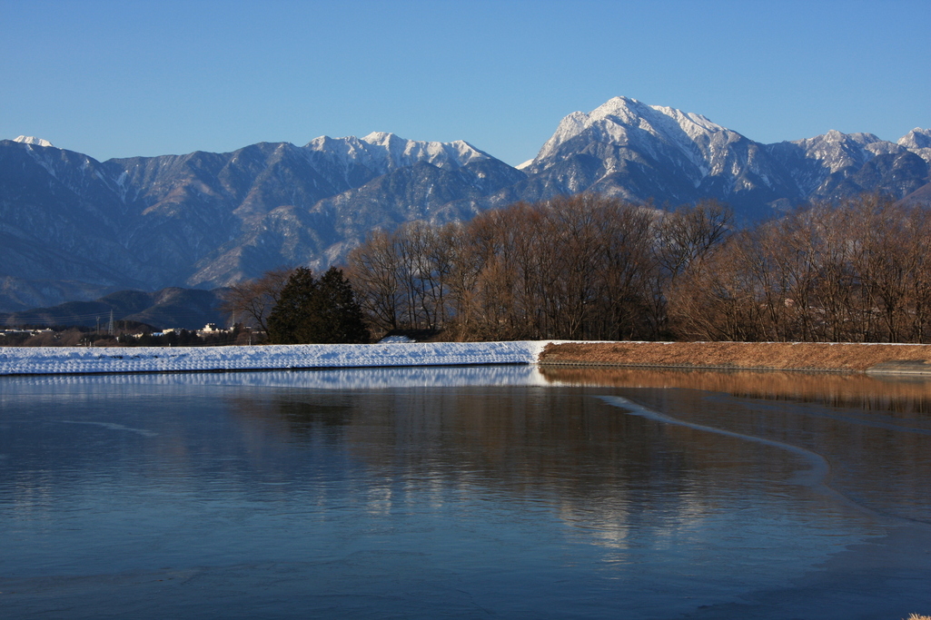 とても濃い色をした池ですね。氷ができるほど寒いのですね。