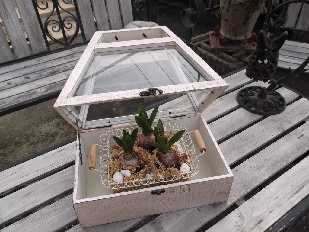 おシャレなミニ温室ですね!ヒヤシンスが咲いてなくても可愛い!このままで素敵!
