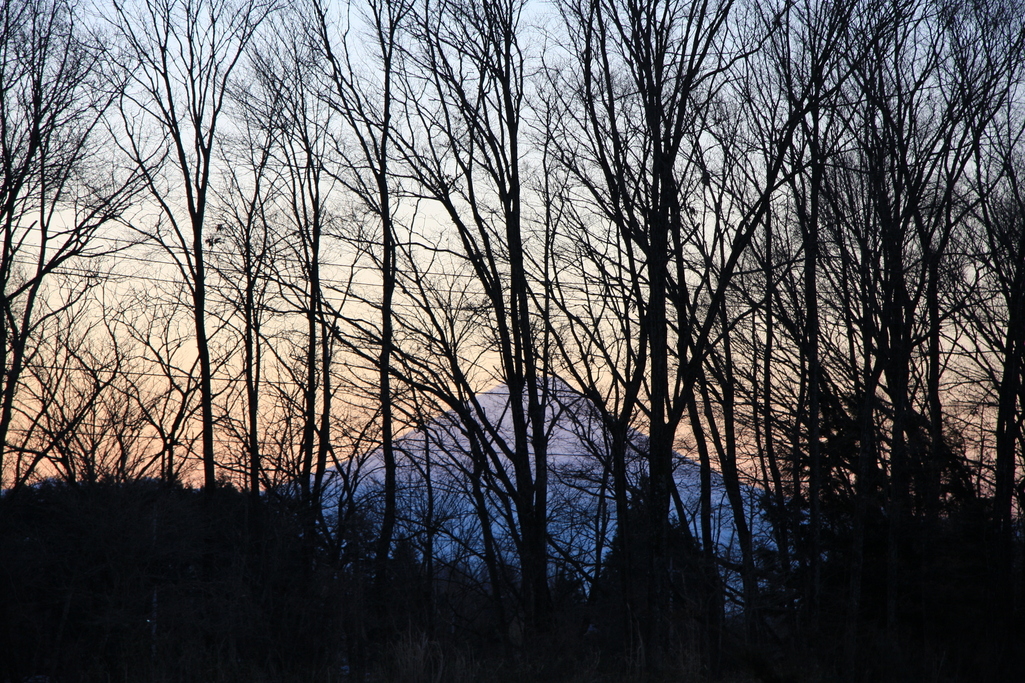 落葉樹のシルエット越しの富士山。かっこいいです!