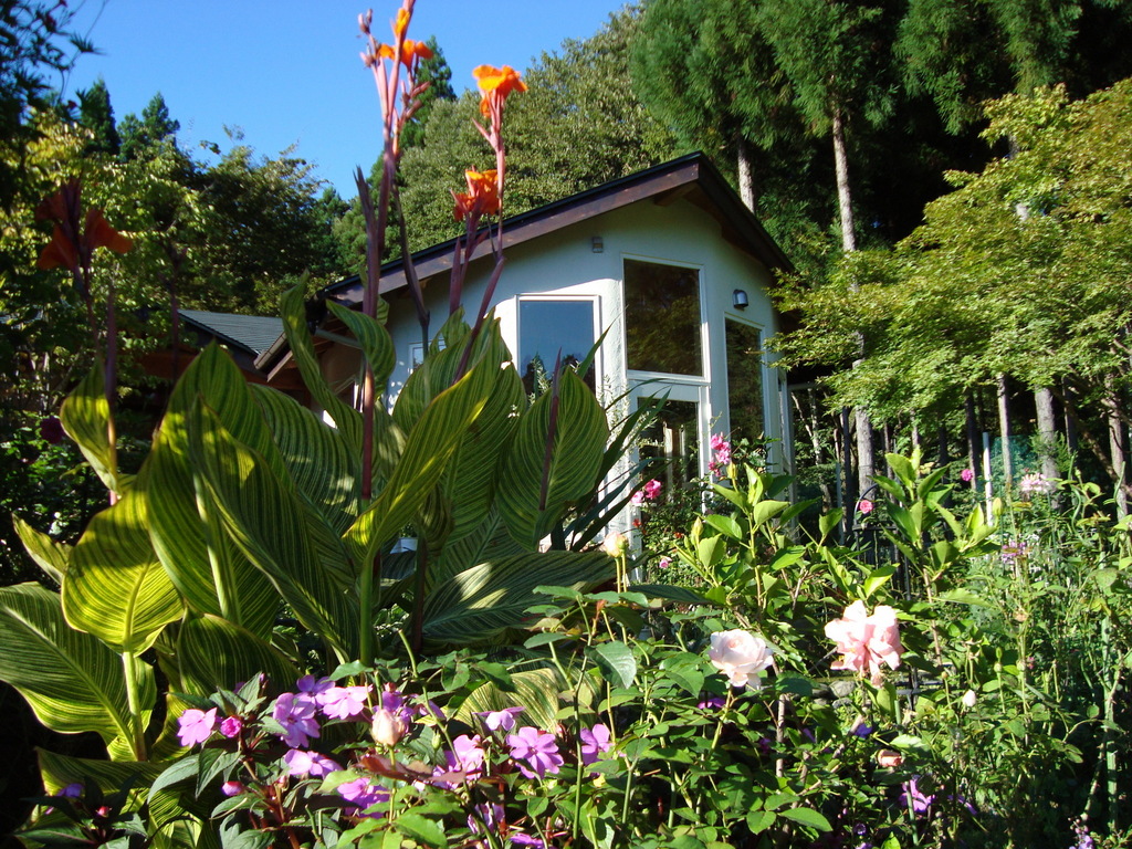 立派なカンナですね。葉っぱの色が素敵で、庭に映えています。