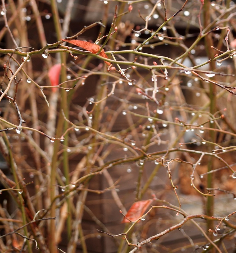 水滴が「ブルーベリー」の枝にもびっしり!!
