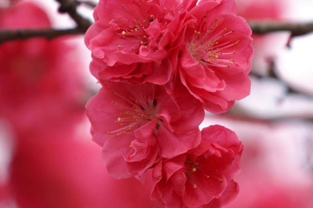 もしかして、花桃の相模シダレでしょうか?こうして花だけを見ると花梅と区別が難しいものですね^^ぜひ全体のアップをお願いします。