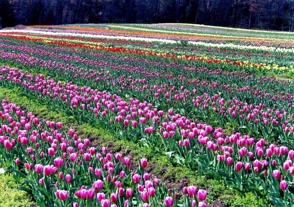 きれ~い^^ これは観光用の畑ですか?それとも球根用?チューリップの栽培は寒いところの方がいいって私はこの間はじめて知りました^^ 確かにうちではせっかく植えても1~2年で球根がダメになっちゃいます。