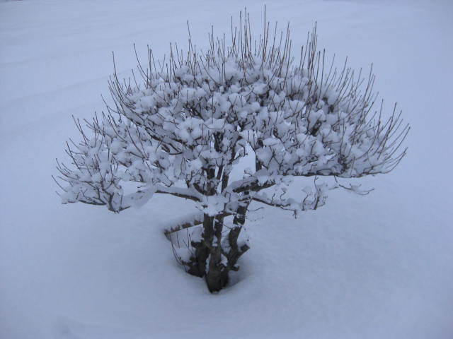 雪深い中にポツンとドウダンの木