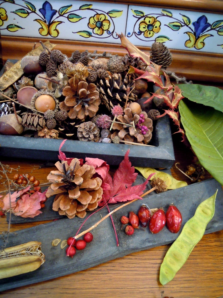 木の実、葉っぱ、セミの抜け殻など。娘の戦利品の数々…