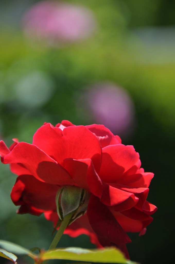 綺麗なばらの後ろ姿ですね。真紅の色がとても、いい色ですね^^