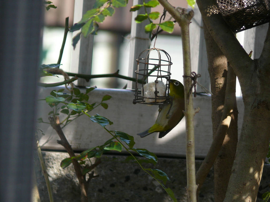 我が家ではもう、メジロがほとんど来ません。シジュウカラがきれいな声で歌います!(^^)! 時々、ヒヨドリに追いかけられています(ー_ー)!! メジロちゃん、器械体操の選手みたい・・・高得点が寄れそう(^_-)
