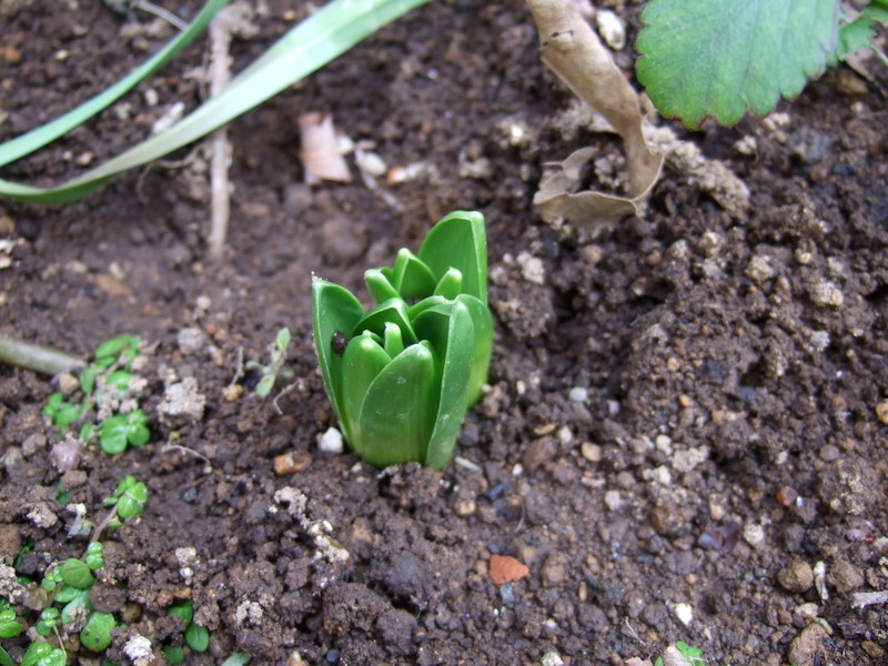 そうそう^^ 植えた覚えのない子がたくさん顔をだしますよね~(笑)・・忘れてるだけかも(笑) ヒヤシンスだと思いますよ^^ 大きさからいくと二年物ってカンジですね~^^