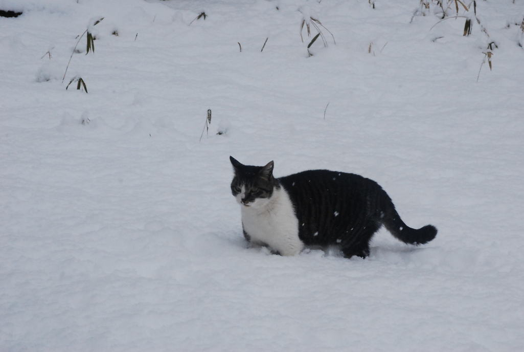 みーちゃんの足が隠れるくらい雪が積もりました。
