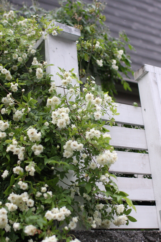 すごく大きくなりますよね(^。^)うちの庭は、一重の白モッコウバラを昨日やっと剪定しました。白い柵に、白モッコウ、moo