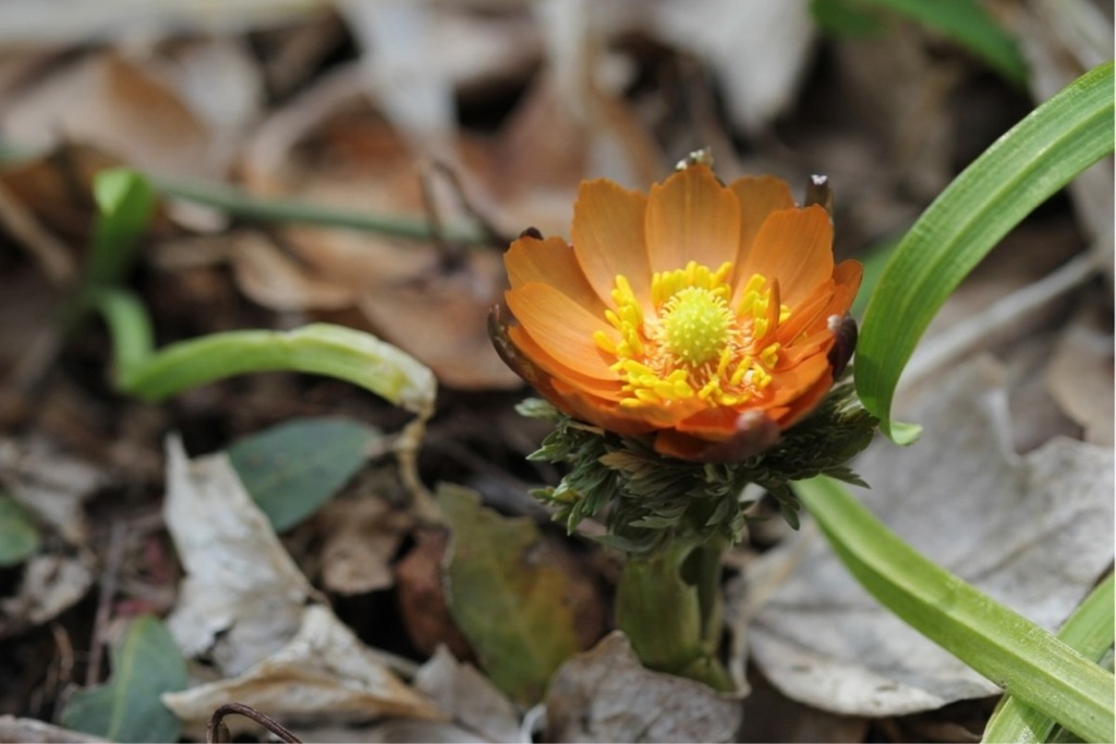 オレンジ色の福寿草・・初対面ですよ♪ はい! 間違って食べないようにします(笑)
