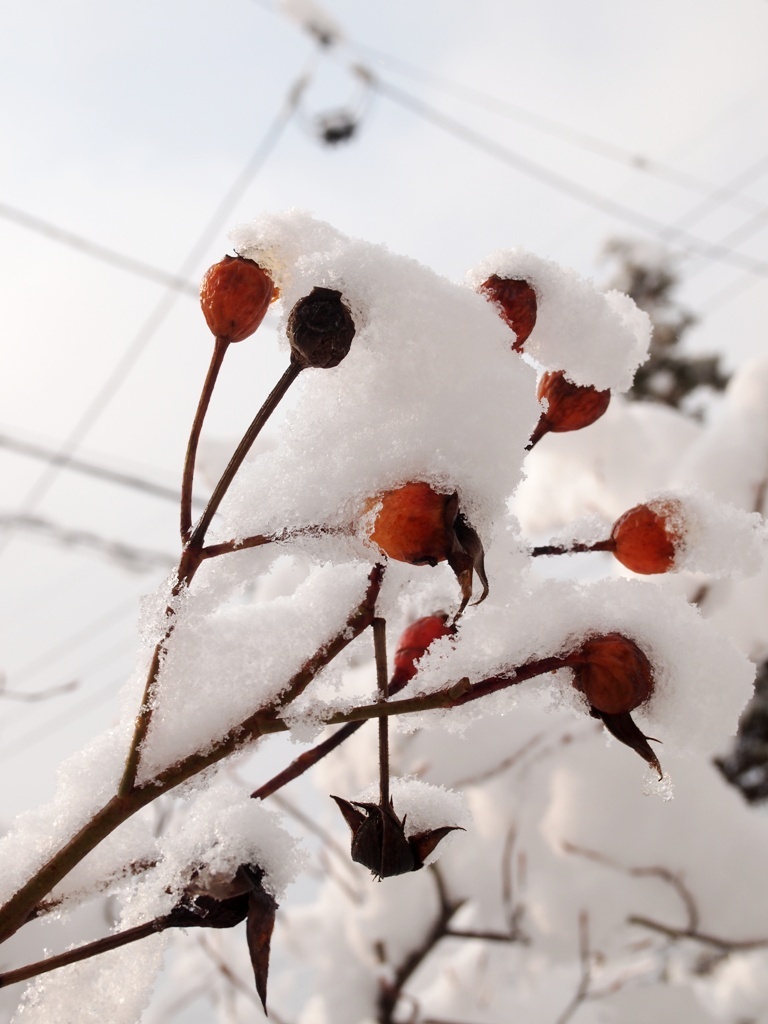 ローズヒップにも雪が纏って…