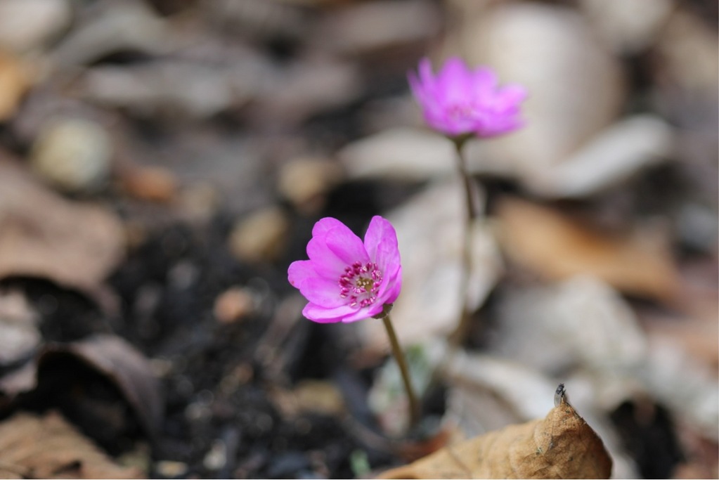枯葉の中、小さな可愛いピンクのお花に引き寄せられますね^^