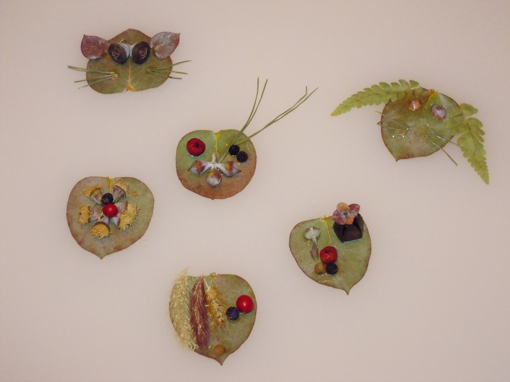 こちらも、娘の作品。ユーカリの葉っぱに、花や実をあしらって、