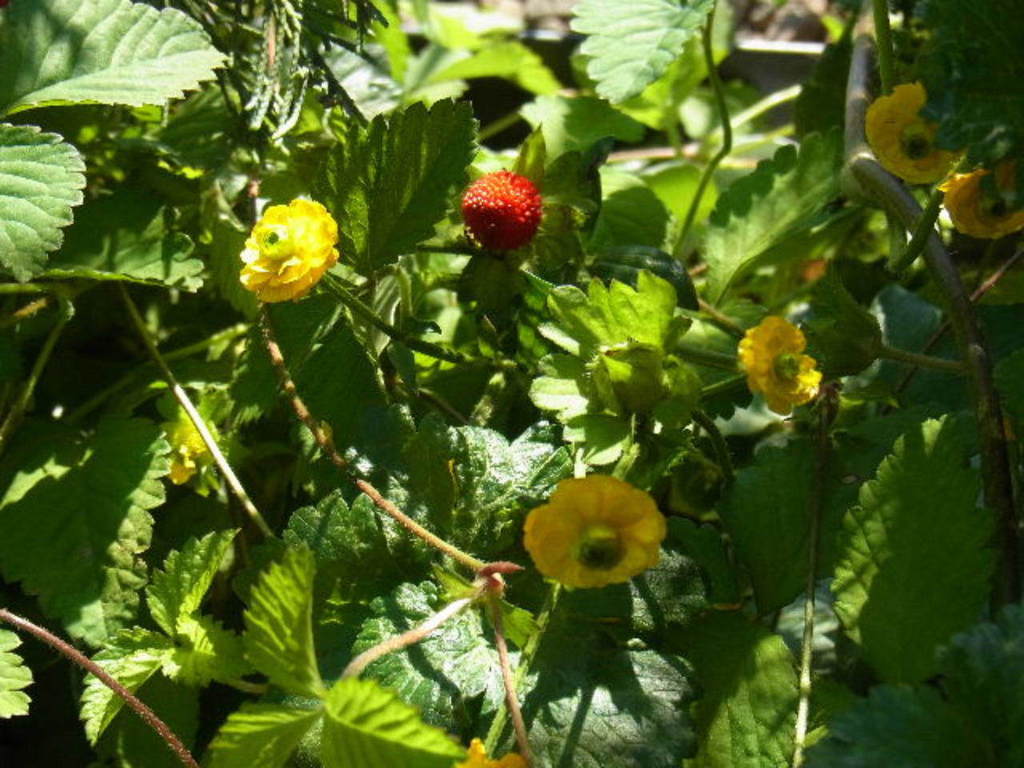 ラナンキュラス ゴールドコインと蛇イチゴ