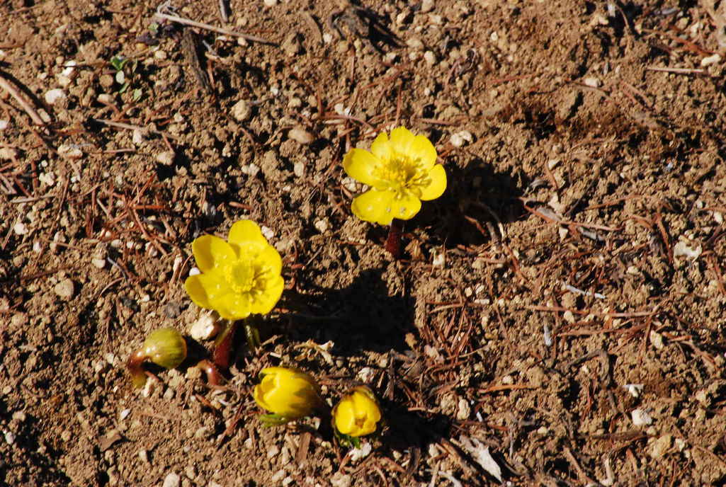 今年も一番にお花畑に色を付けたのはキバナノセツブンソウ!土色のキャンバスにいろいろな色が塗られていきます。