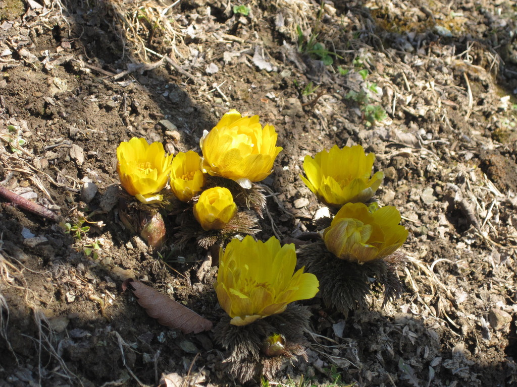 園内の入口付近に、沢山の福寿草が咲いていました。鮮やかな黄色が春を感じさせてくれます。