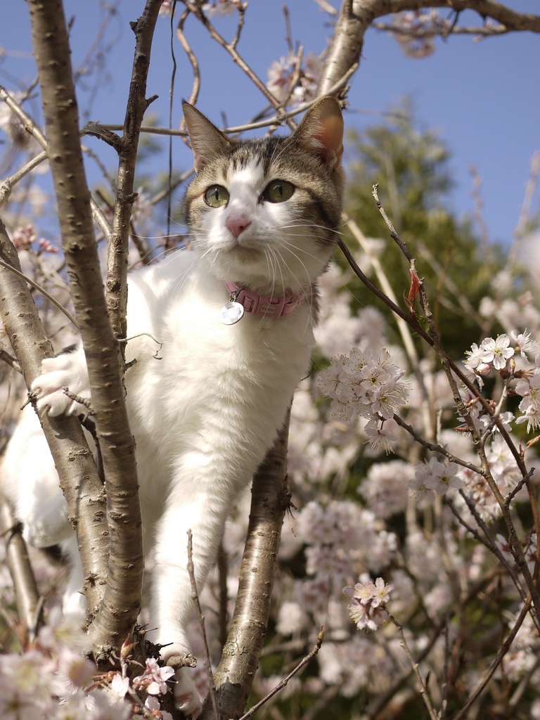 ももちゃんとってもかわいいですね。猫と桜は良く似合います。