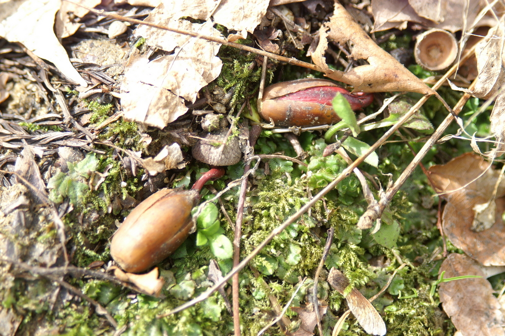 どんぐりから芽が出てるの・・初めて見ました。 土に埋まってないのに・・逞しい~!(^^)