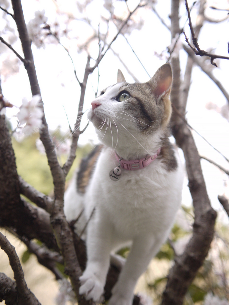 ちょっと得意そうに木に登ってますね。桜と猫ちゃん、絵になってます。Lizzyさんが一生懸命モモたん追っかけて写真撮ってる姿を想像すると、ちょっと楽しいです。