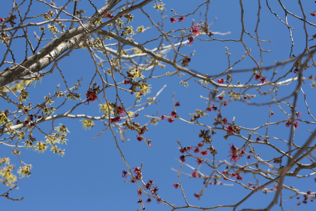 さわやかな青空をバックに、マジックアイの立体視のような不思議な写真。よくある花木なのに、幻想的ですね。